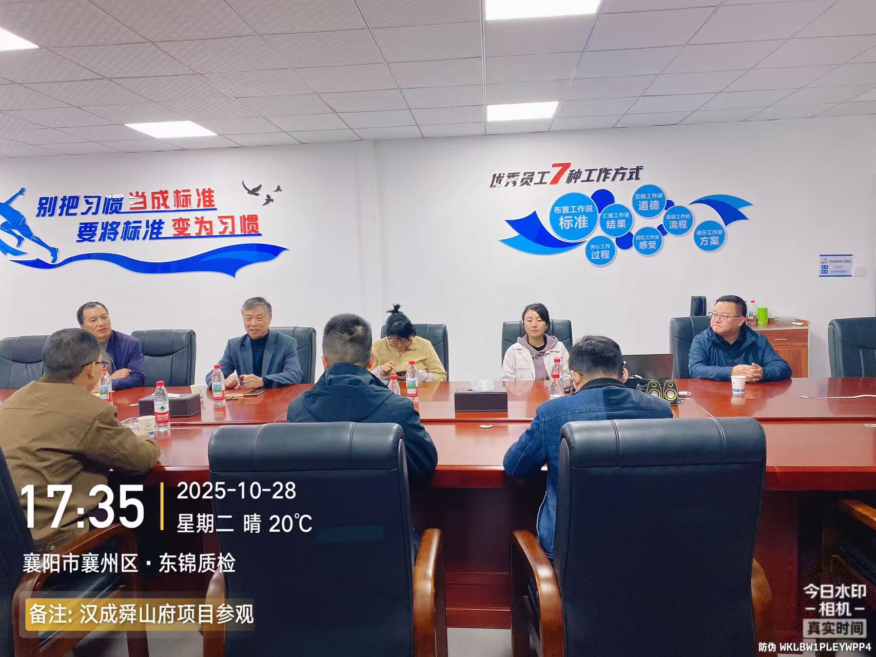 2025年10月28日下午,汉成舜山府项目客户一行来公司参观考察。公司总经理何宏伟全程陪同,技术负责人胡萍负责讲解。客户一行首先参观了我司检测实验室,胡总向客人介绍了我司在工程质量检测、安全监测等领域的最新成果与核心技术优势。客户对我司严谨规范的操作流程、先进的设备配置以及高效的项目管理能力给予了高度评价。
