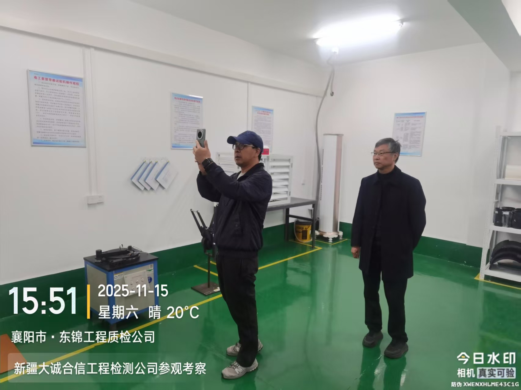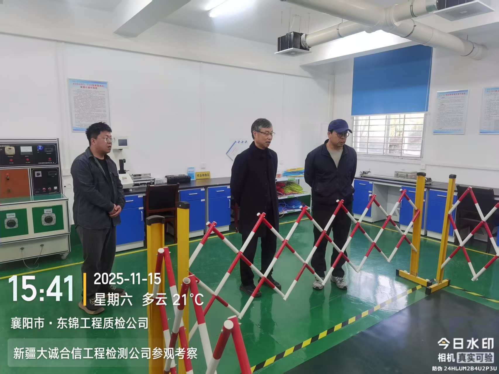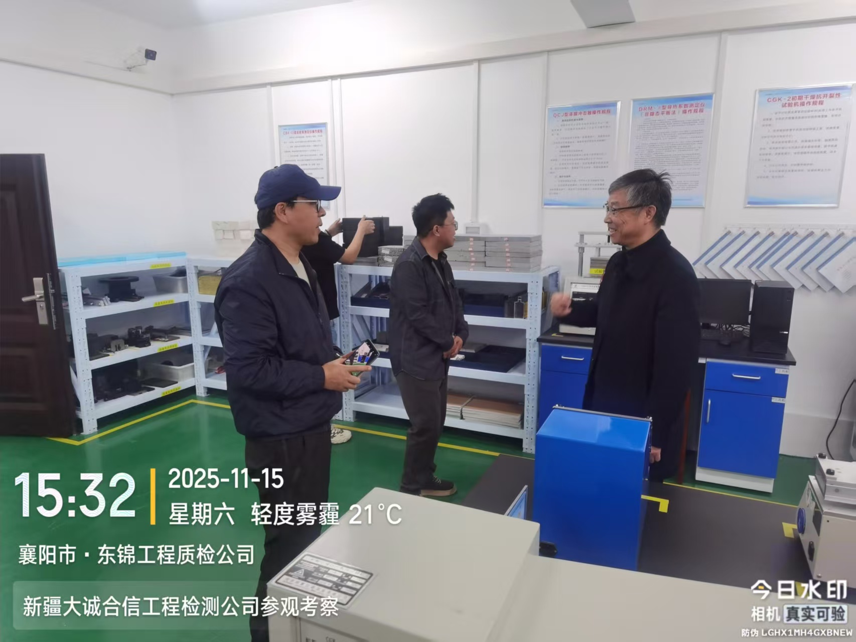 阅读次数:67 发布时间:2025年11月17日2025年11月15日,新疆大诚合信工程检测有限公司一行莅临公司参观考察。公司总经理何宏伟全程陪同,并做详细介绍。