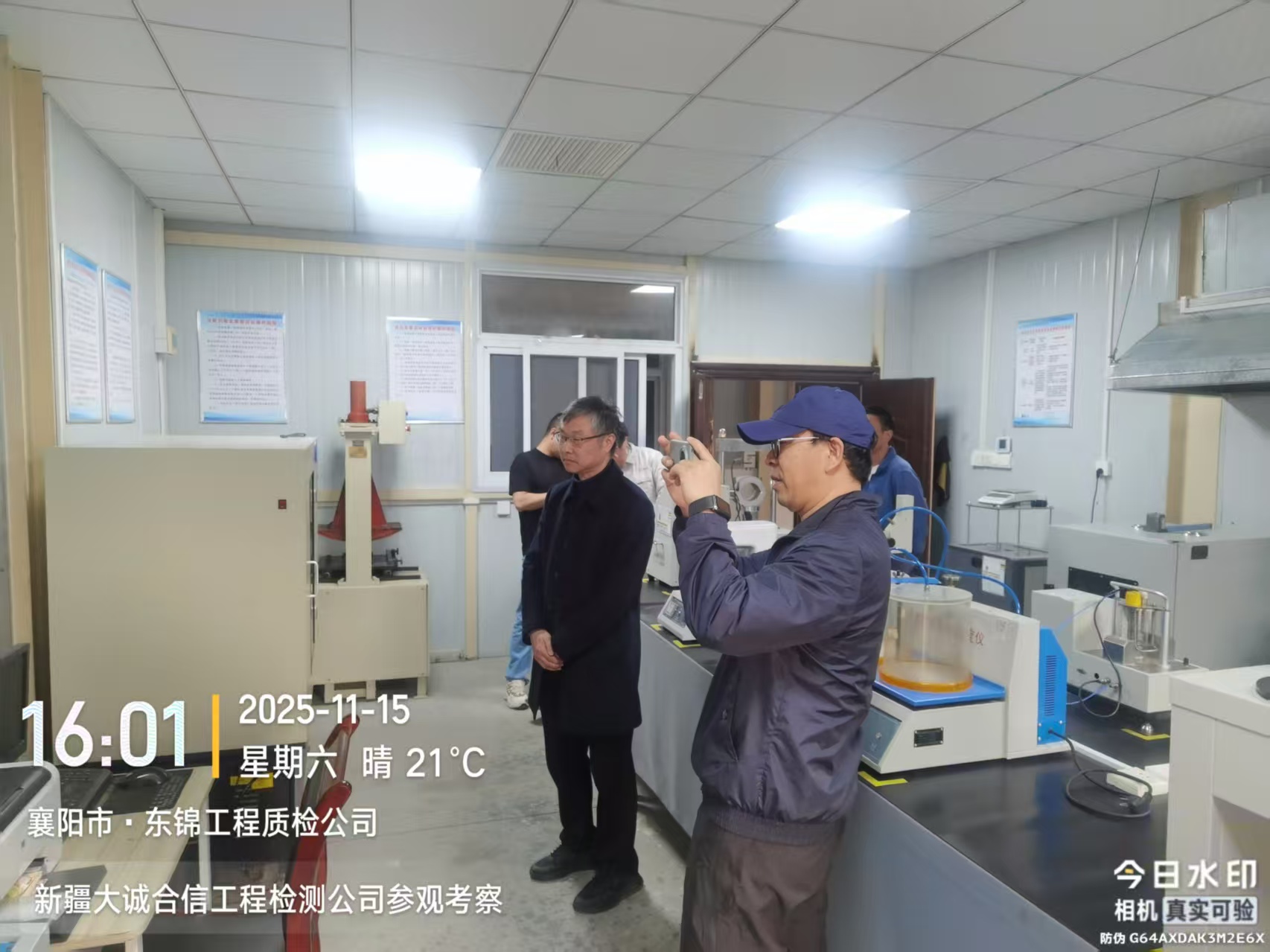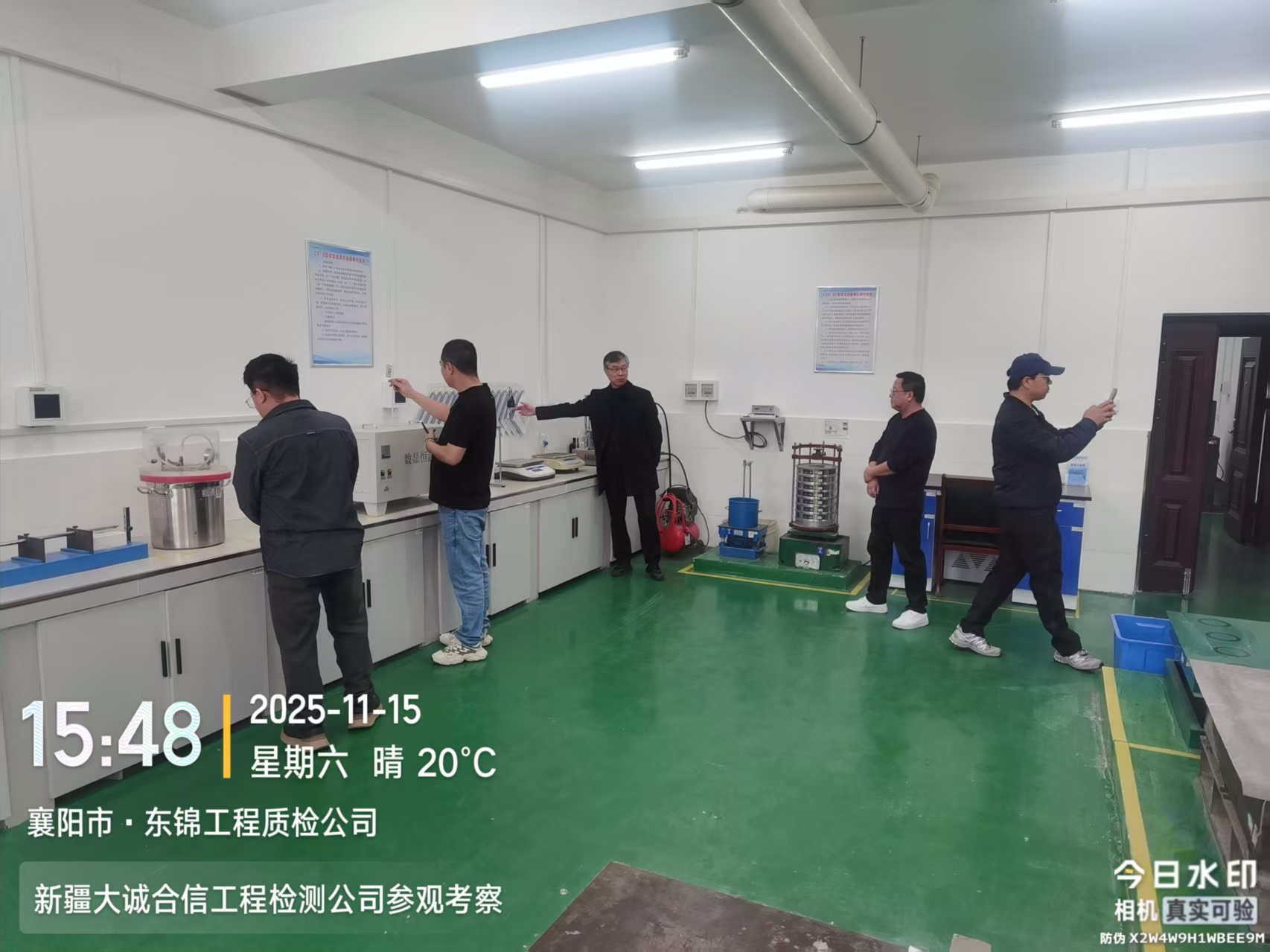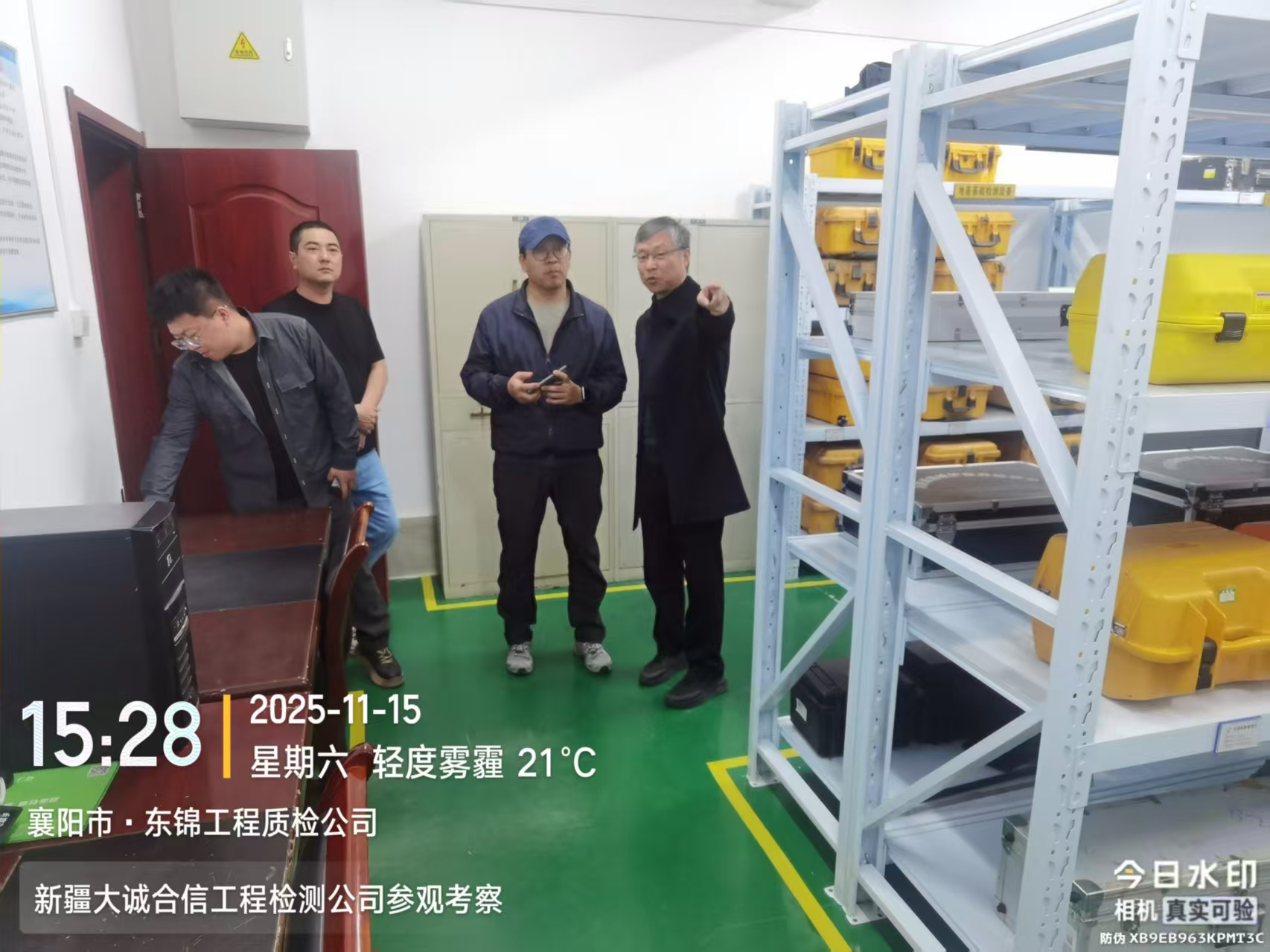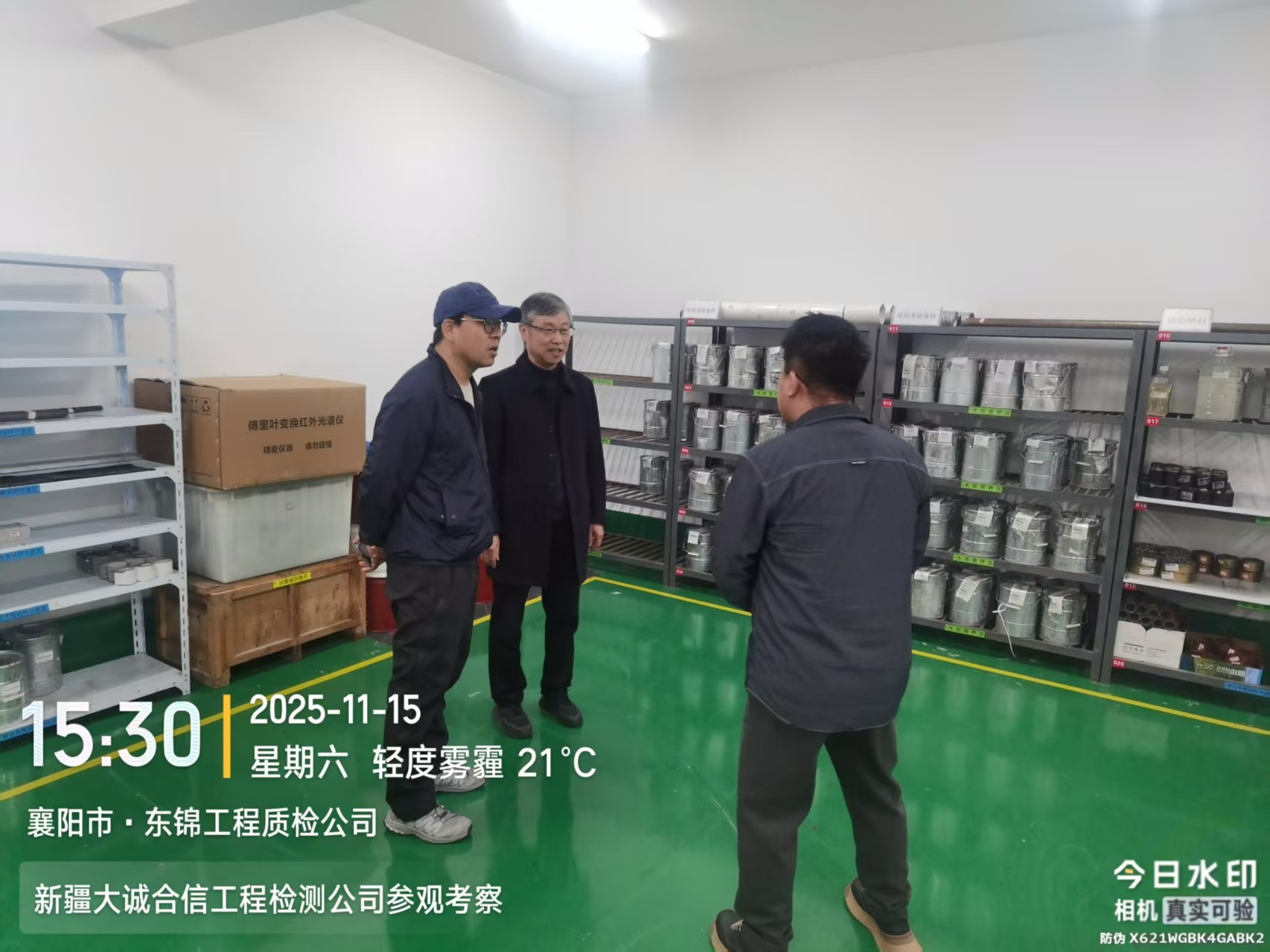 阅读次数:67 发布时间:2025年11月17日2025年11月15日,新疆大诚合信工程检测有限公司一行莅临公司参观考察。公司总经理何宏伟全程陪同,并做详细介绍。