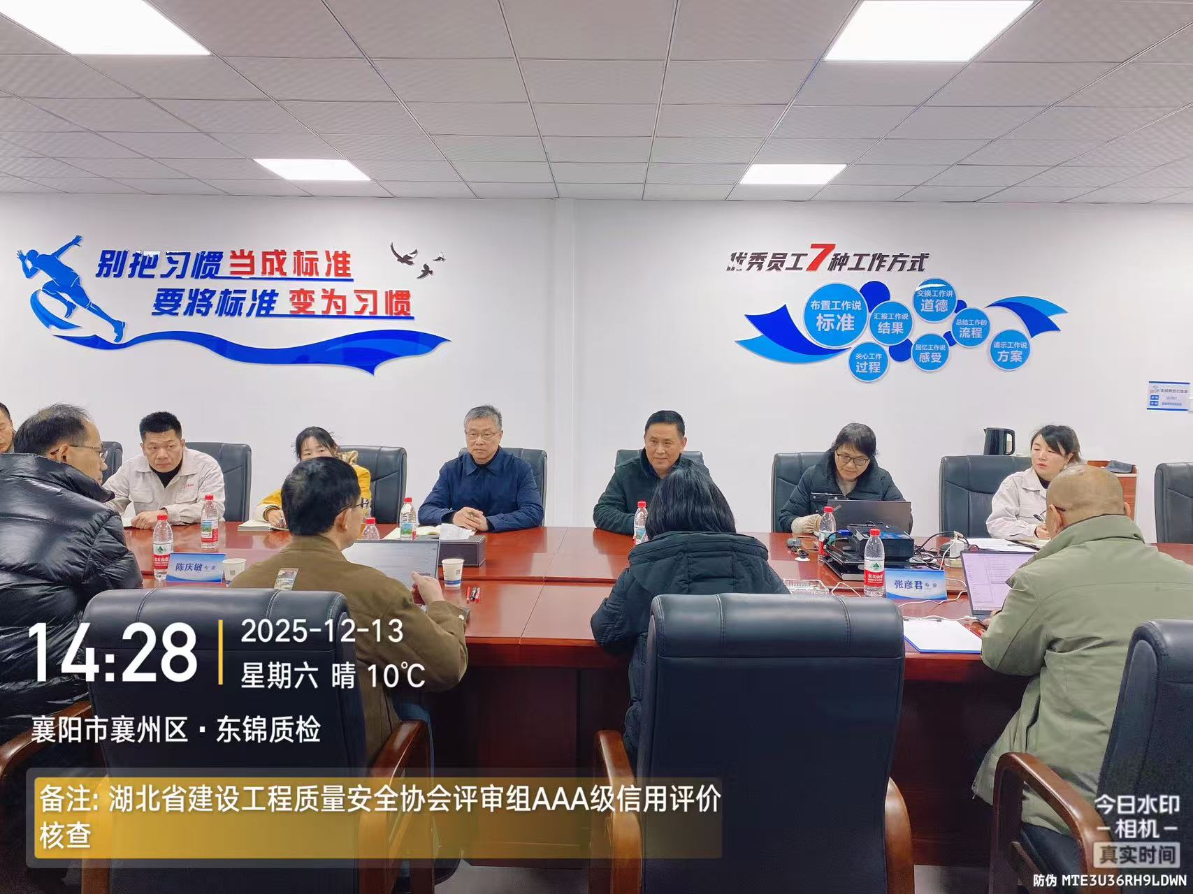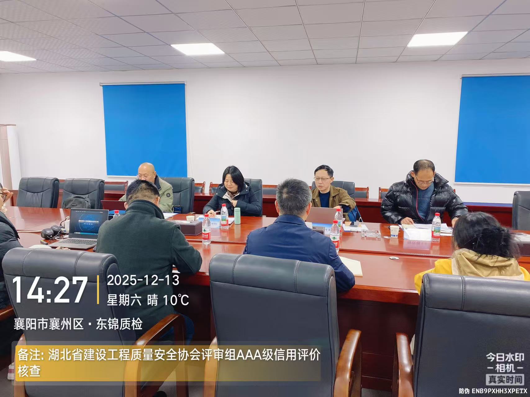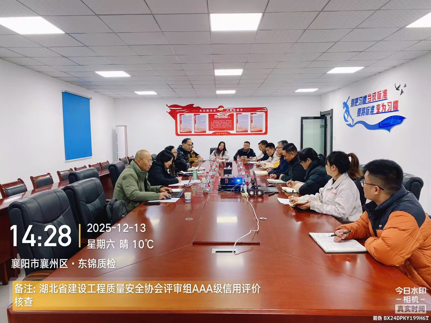 2025年12月13日,湖北省建设工程质量安全协会秘书长周艳萍率领信用评价评审专家组一行,莅临我司进行企业AAA级信用等级评价现场核查工作。公司主要领导及相关部门负责人陪同接待并参与了此次核查的全过程。